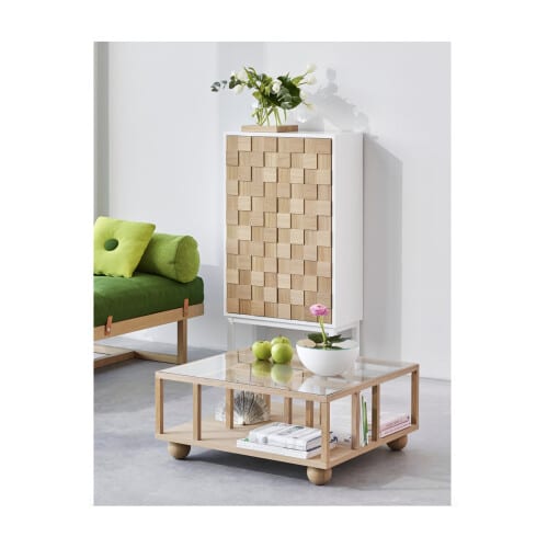 Low Cabinet är ett sideboard från A2. Denna med ekben och vitt skåp. 4st dörrar
