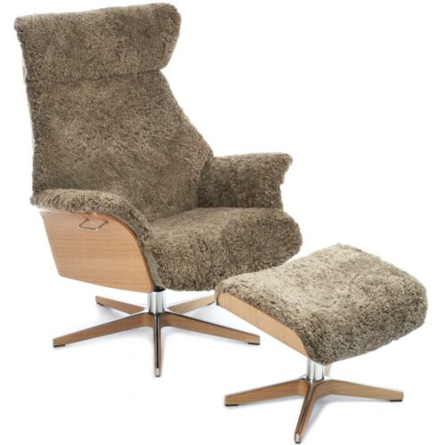 Lamino Fåtölj & Pall. Välj mellan oljad ek eller lackad bok / Fårskinn Scandinavian Grey. LAGERVARA!