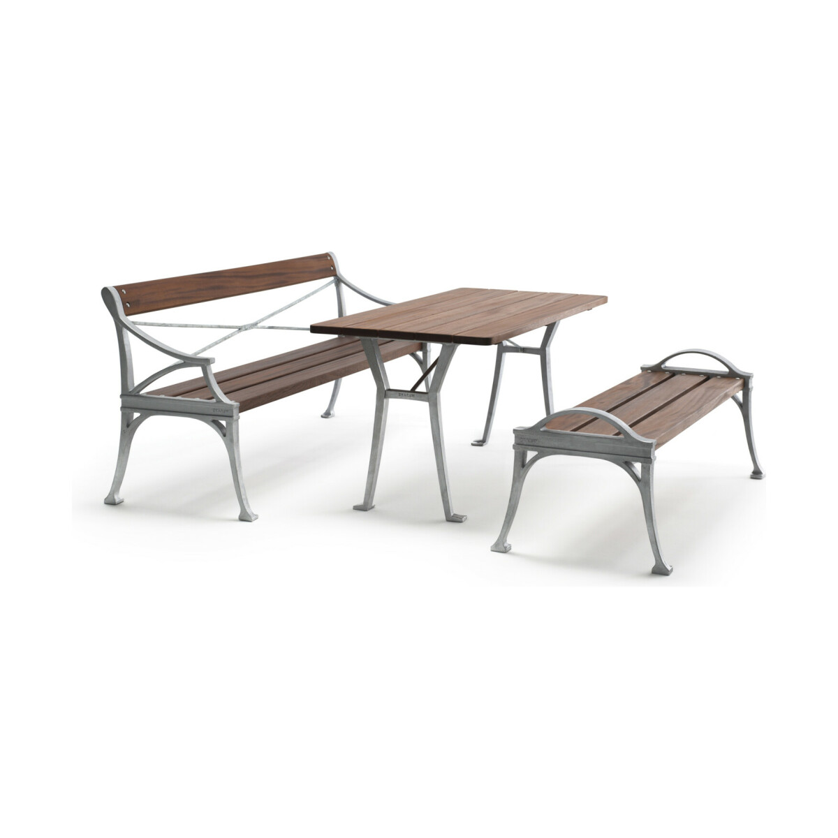 Inspirerad av Lessebo-soffan, som har sitt ursprung från 1840, formgav Björn Alge detta bord. Det kraftiga virket i kombination med återvunnen aluminium ger bordet ett vackert uttryck.