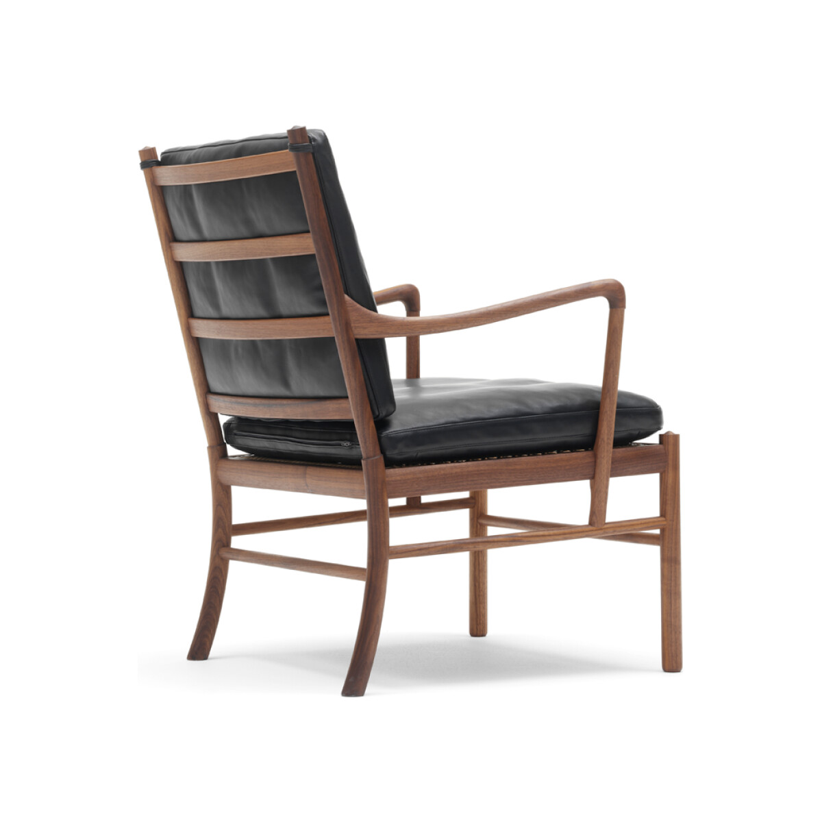 Colonial Chair kännetecknas av sina slanka proportioner och rena linjer. Fåtöljens ram är tillverkad av massivt trä, där kunder kan välja mellan olika träslag som ek eller valnöt, med flera ytbehandlingar för att passa olika inredningsstilar. De något böjda armstöden ger både komfort och ett sofistikerat utseende, medan de rundade benen och de subtilt utåtböjda bakbenen bidrar till både stabilitet och elegans. Den handvävda sitsen i rotting eller det stoppade läder- eller tygsätet kompletterar träets naturliga skönhet och ger en inbjudande känsla.