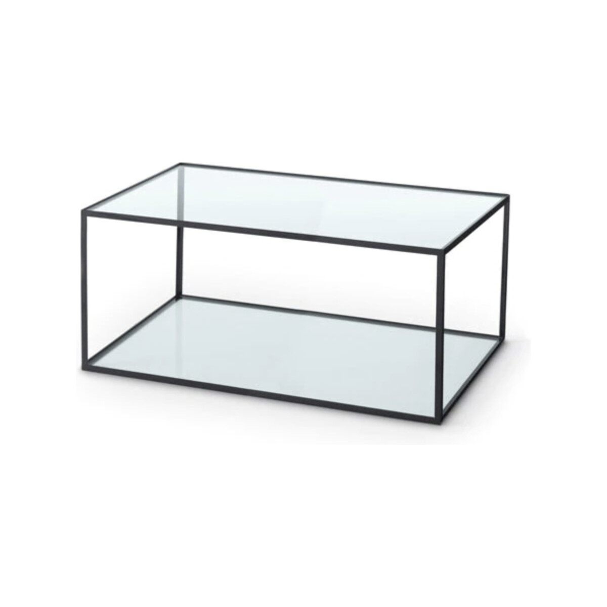 Ett klassiskt bord med rektangulär form i kromat eller svart utförande samt en bas- och bordsskiva av glas. Stativ i svart alternativt krom. Härdat glas