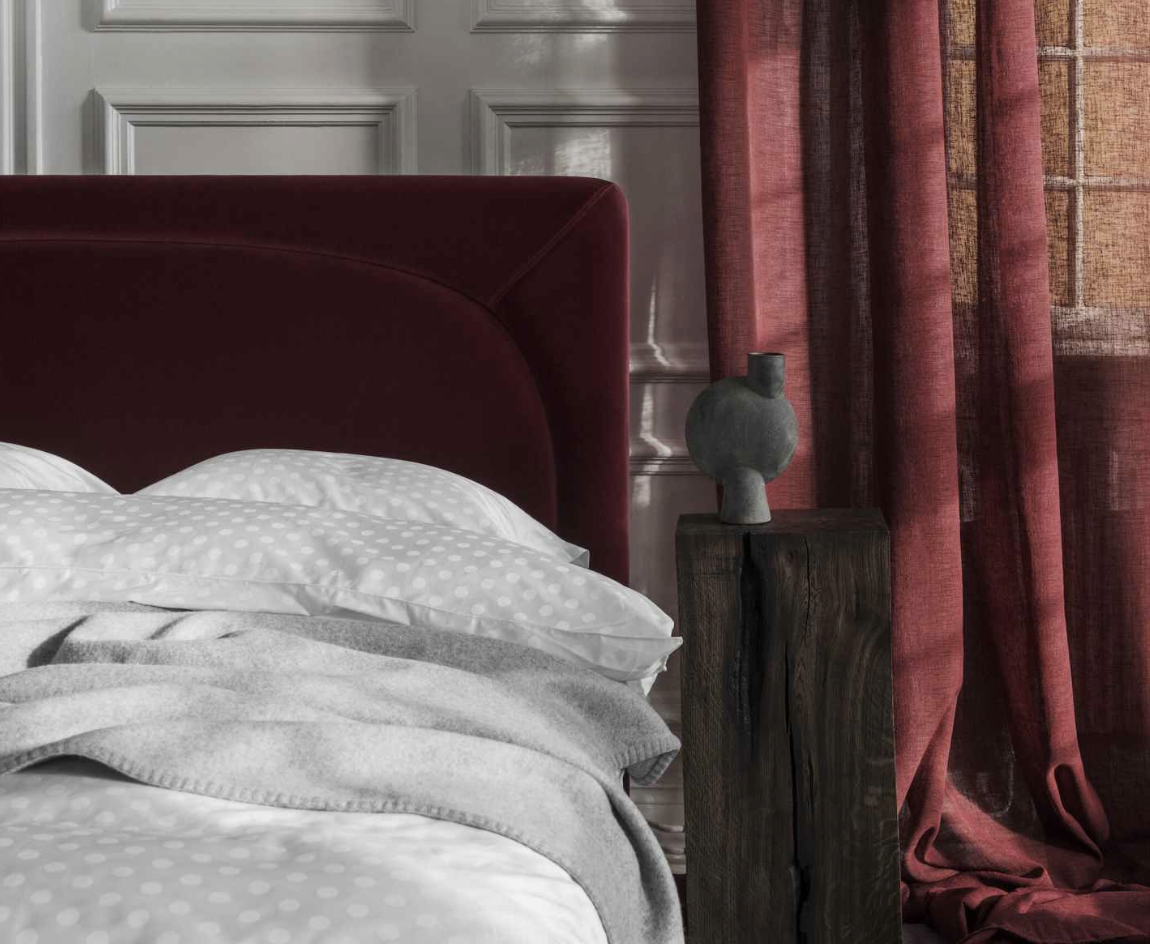 Eden sänggavel kännetecknas av sina mjuka linjer och generösa vaddering, vilket ger en inbjudande och varm atmosfär. Dess avskalade design med subtila sömmar skapar ett elegant uttryck som passar både moderna och klassiska interiörer. Den enkla men sofistikerade formen låter materialet och hantverket tala för sig självt, vilket är signifikativt för DUX:s designfilosofi.