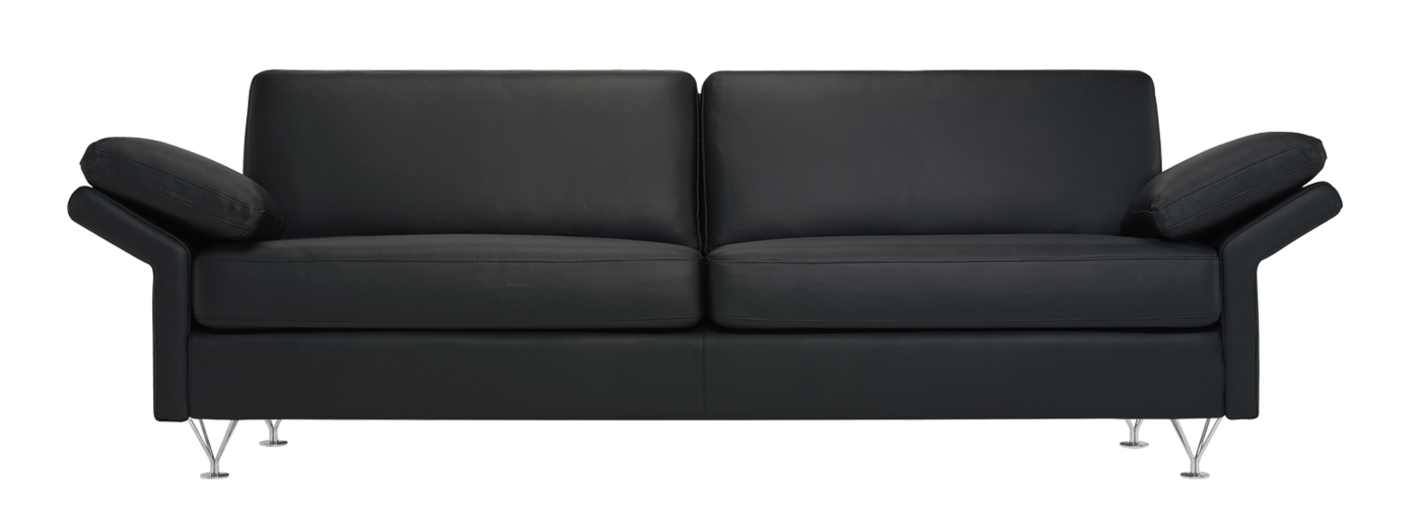 Soffan finns i flera olika färger och i olika tyger eller läder. Avtagbar klädsel. Ben i rostfritt stål på 12 cm