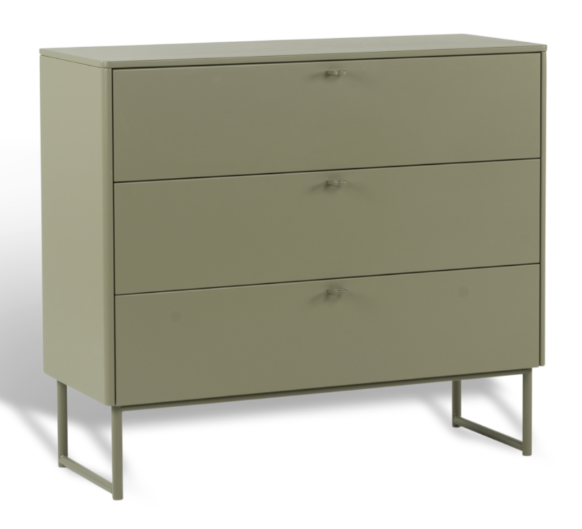 Byråns design är tidlös och balanserad, vilket gör den enkel att kombinera med både moderna och mer klassiska inredningsstilar. Deus byrå har en vacker nätt detalj med ett rundat hörn i framkant. Den har också ett enkelt metallgrep och detaljrikt underrede med en lätt uppflyttad mittdel för en luftigare ”med”. Som alla andra skåp och byråer hos Mavis är den lackad runt om.