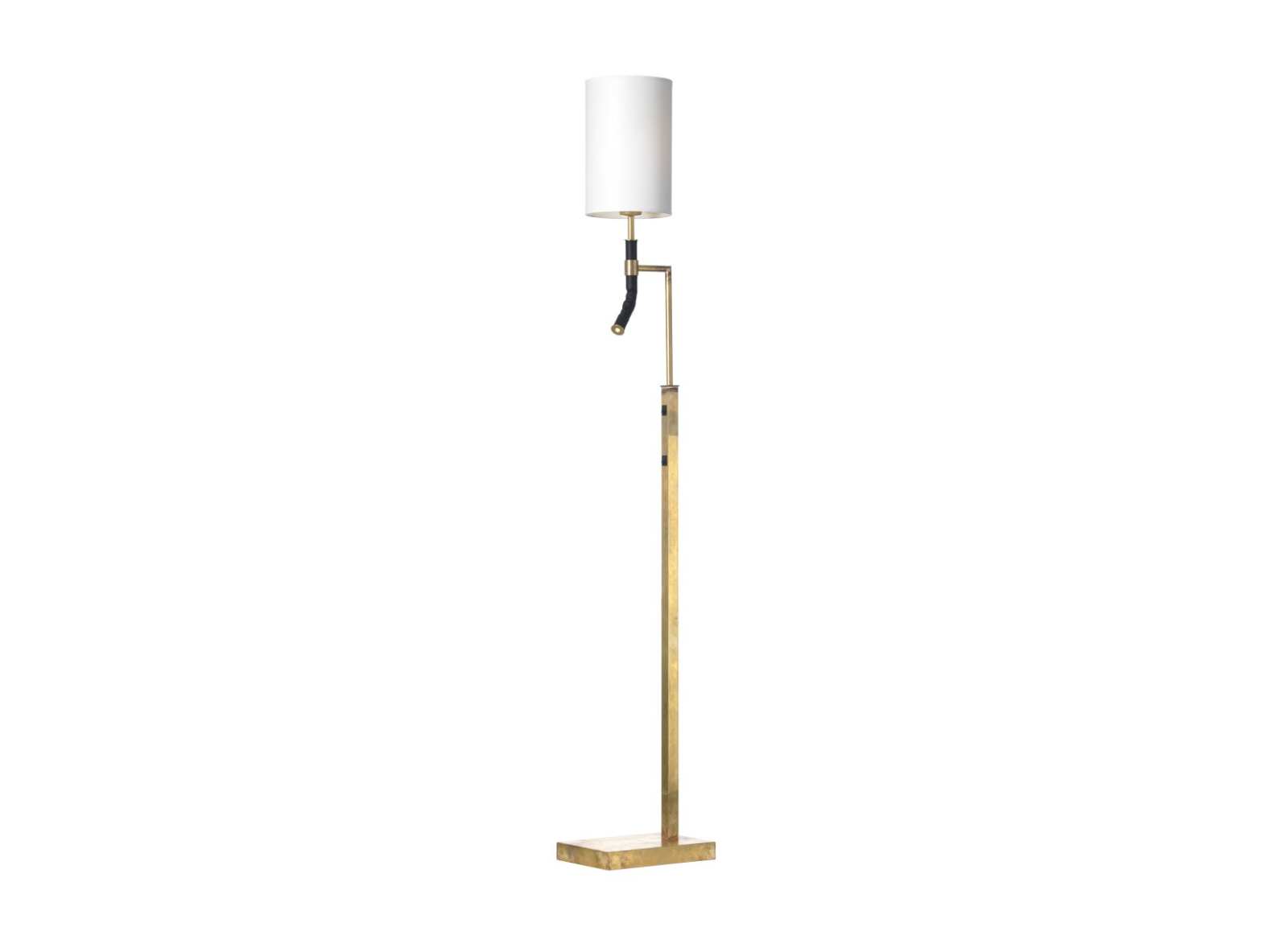 Golvlampan som med fördel placeras intill soff- eller sittgruppen. Med den fasta ljuskällan erhåller man trevlig allmänbelysning medan den riktade bidrar till bra läsljus.