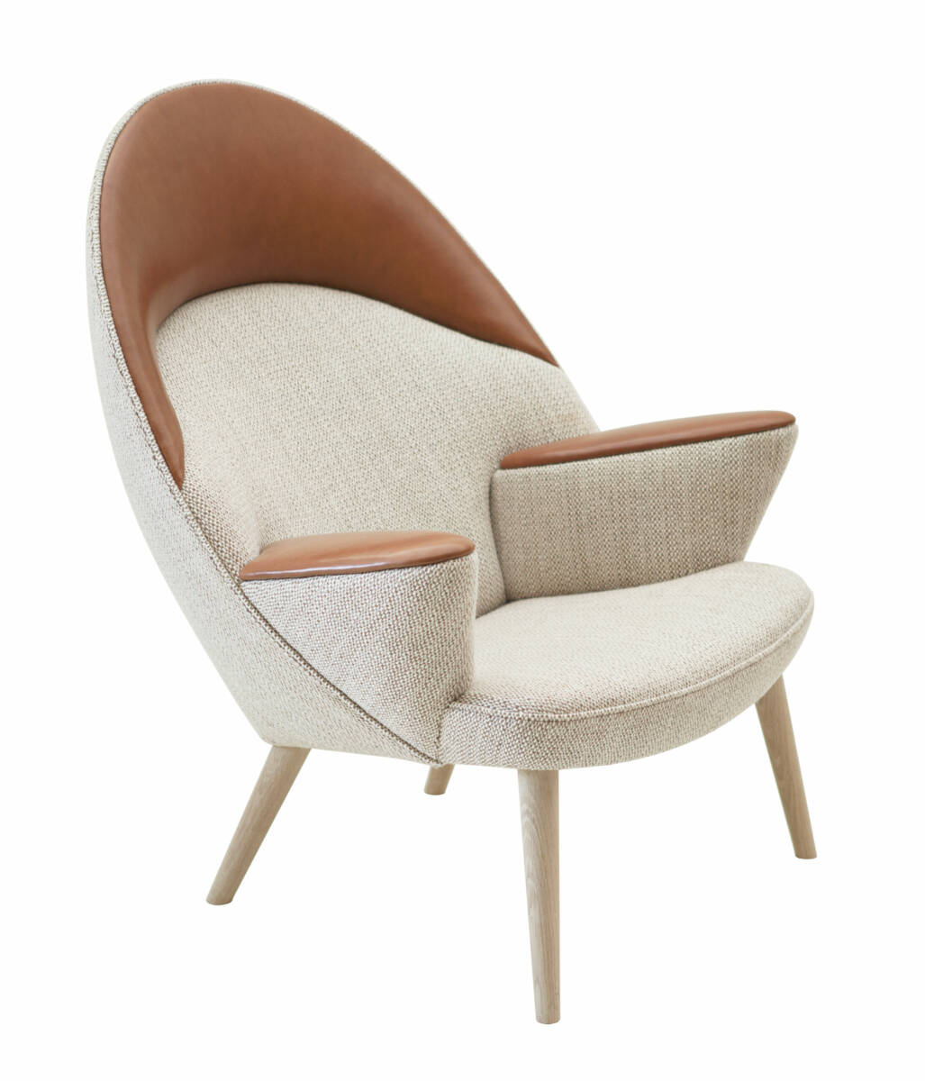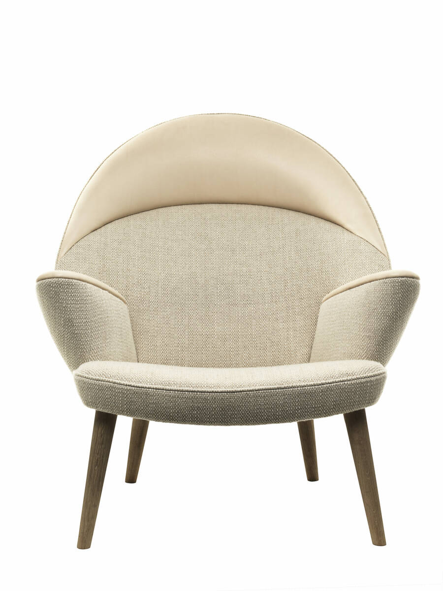 Kombinationen av läder och tyg är elegant löst. Det sätt på vilket dessa två motstridiga material är så väl avvägda är ett starkt exempel på Wegners kunskap och känsla för material.